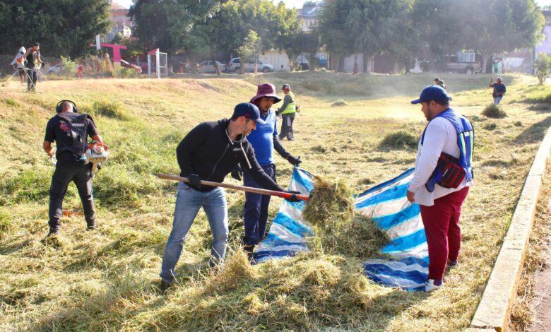 Durante la jornada, se intervino el área verde ubicado en la calle Eduardo Tres Guerras. Ahí, se realizaron labores de poda de pasto, limpieza de camellones y retiro de residuos, así como la revisión y mantenimiento del alumbrado público, para hacer del lugar un espacio más seguro en el paso peatonal y vehicular.